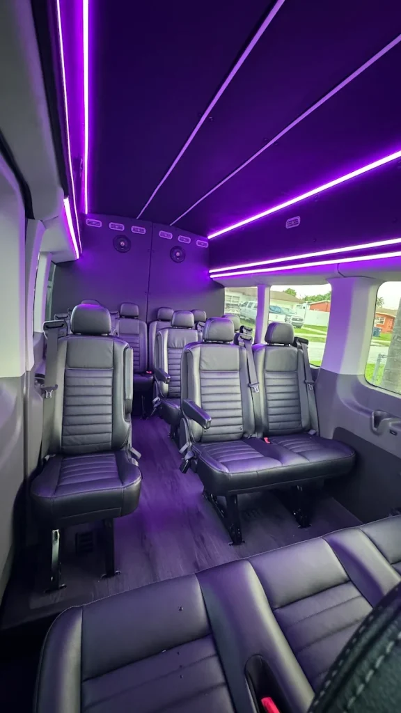 Spacious Mercedes Sprinters for groups, events, and airport transfers.